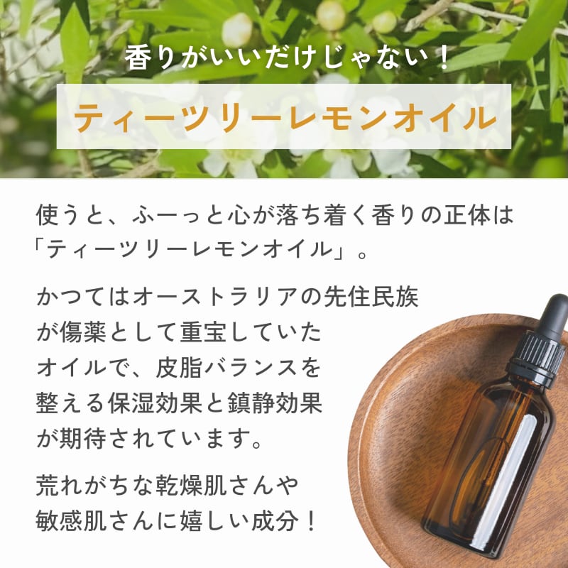 レプトスペルムムペテルソニイ油(ティーツリーレモンオイル)をプラス。