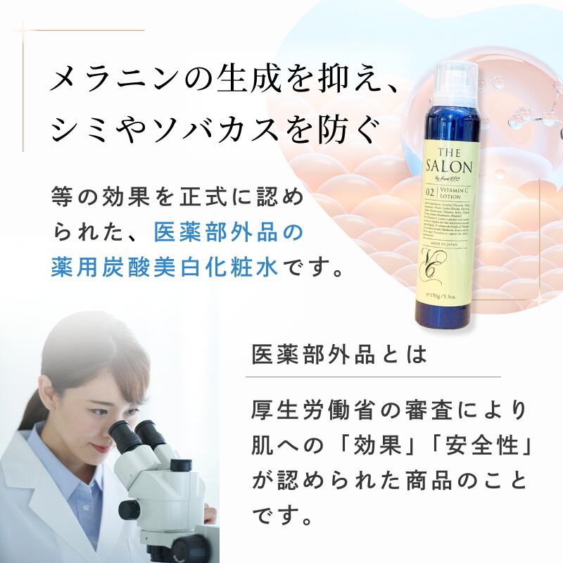 エステ仕様の炭酸美白ビタミンCローション。大人肌に栄養補給。透明感のある肌に導きます。
