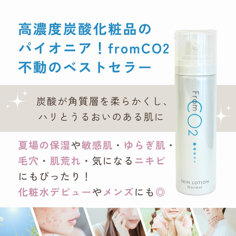 ツルっと透き通る、うるおいとハリに満ちた素肌を保つ高濃度炭酸化粧水。炭酸ガス*が高濃度でダイレクトに肌へなじみます。