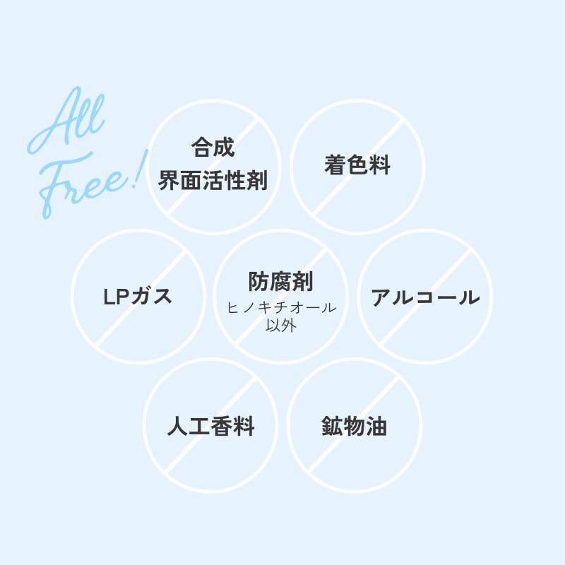 [成分]水、グリセリン、トレハロース、BG、ベタイン、二酸化炭素、ホップ花エキス、キサンタンガム、ジイソステアリン酸ポリグリセリル-10、ヒノキチオール、アロエべラ葉エキス、リンゴ果実エキス、ナツメ果実エキス、サンザシエキス、グレープフルーツ果実エキス、ライム果汁、オレンジ果汁、レモン果汁