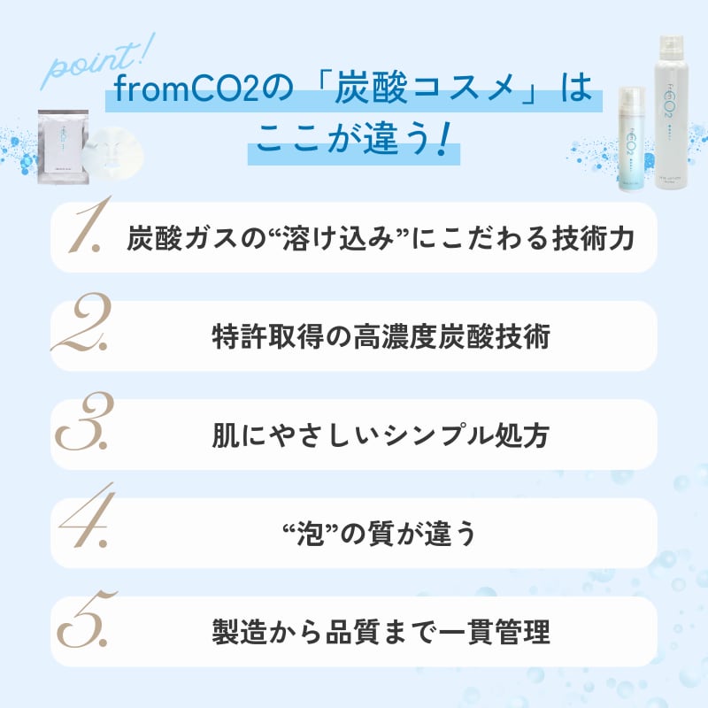 高濃度炭酸ガス*(1000ppm以上)を溶かし込み天然由来保湿成分12種を配合しています。