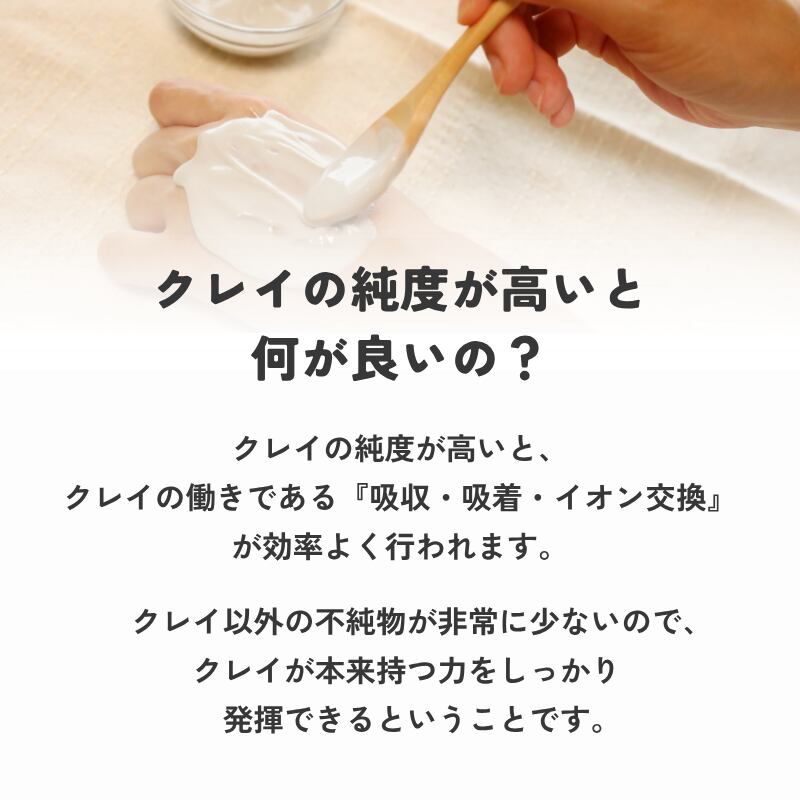 クレイの持つ力、吸収・吸着イオン交換によってお肌の古い角質や汚れを除去します。