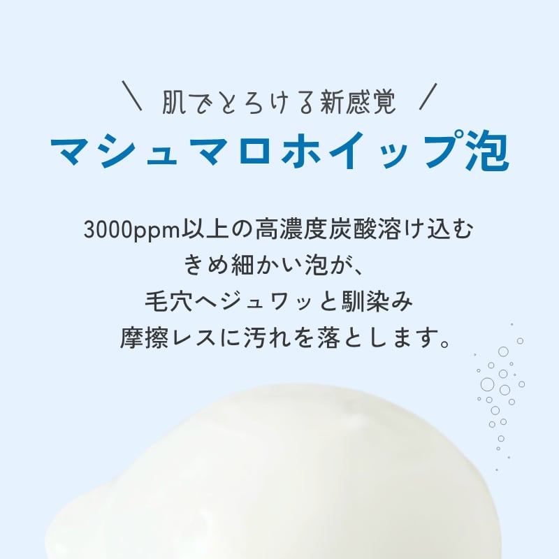 マシュマロのような炭酸泡クレンジングが、できるだけ摩擦を減らし、 簡単で手軽に時短にメイクや日焼け止め、皮脂や角質などの汚れを落とします。