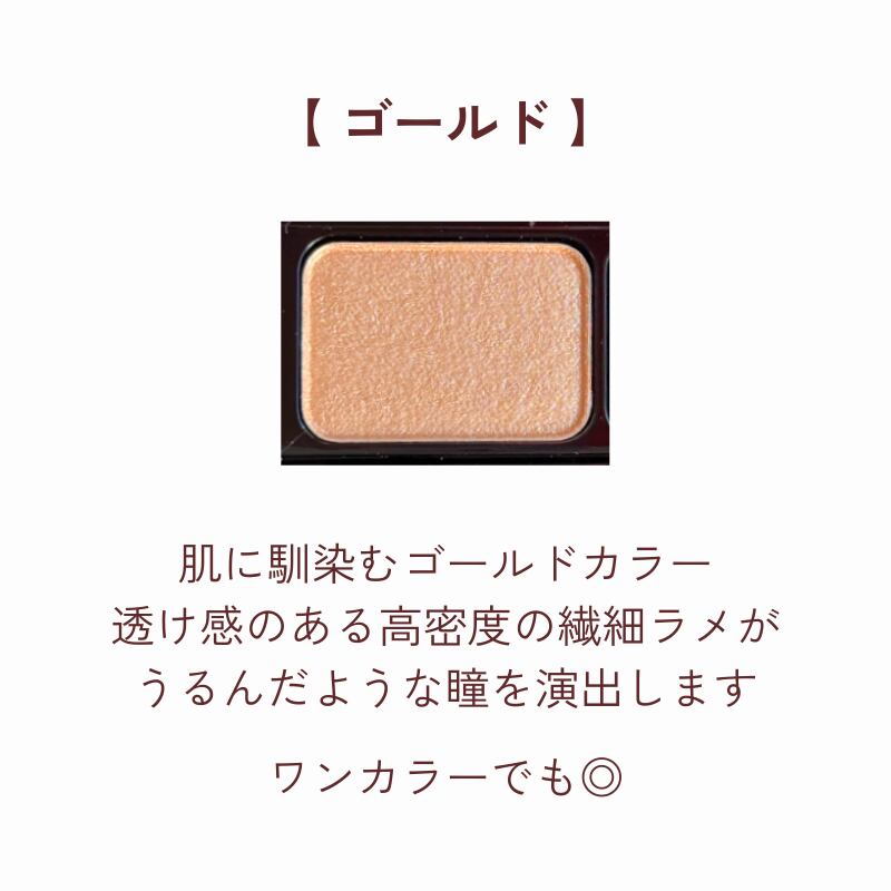 ゴールド:高級感のあるゴールドラメ、肌になじんで目もとのくすみも明るくなります。