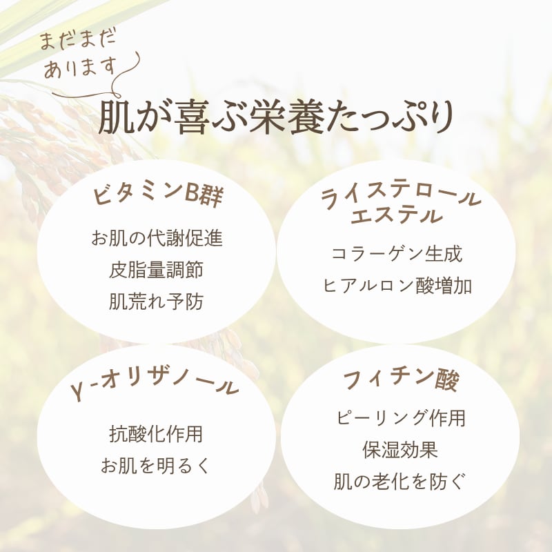 米ぬかの持つセラミドが肌のうるおいを逃さず、汚れをつるりと洗い上げます。