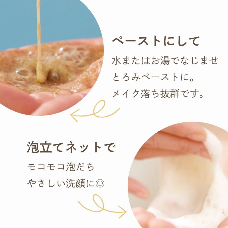 毛穴の汚れや角栓もキレイになって、洗い上がりはしっとりスベスベ肌に。泡立ちネットを使えばモコモコ泡立ちます。