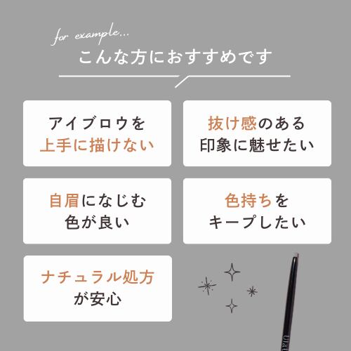 1本1本毛流れを描くことで本来の眉と一体化し、より自然に仕上がります。色味を整えたいときは、上にアイブロウパウダーやアイブロウマスカラを重ねて調整をするのがおすすめです。