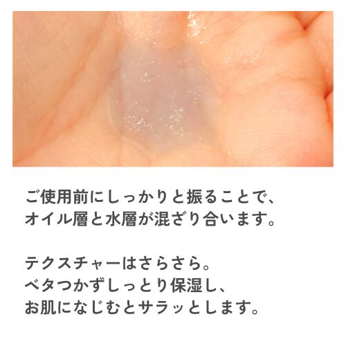 油分とエッセンスを使いやすいバランスに配合することで、日常の保湿ケアに加えフェイスケア、ボディケア、ハンドローションなどあらゆるシーンで大活躍。