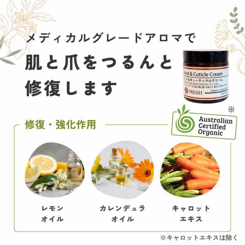 オーガニックレモンオイルとキャロットエキス、カレンデュラオイルの効果で皮膚の奥からケア!